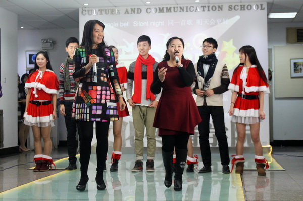 臨近期末,文化傳播學(xué)院舉辦了一場別開生面的“2014跨年音樂會(huì)”,2013級(jí)播音與主持藝術(shù)專業(yè)眾學(xué)子既是主演又是考生,他們用精彩的歌舞表演為聲樂課結(jié)業(yè)交上一份滿意答卷,同時(shí)和參演老師們一起表達(dá)了新年到來的期盼和對(duì)學(xué)校、祖國的祝福之情。
