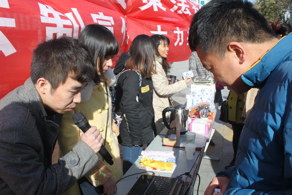 在我國第一個“憲法日”來臨之際,為全面貫徹落實十八屆四中全會精神,增強全民法治觀念,強化反腐倡廉意識,推進(jìn)法治社會建設(shè),由西安市未央?yún)^(qū)紀(jì)委、司法局主辦,我校管理學(xué)院團(tuán)委與法學(xué)系及陜西豐東律師事務(wù)所承辦的12·4“憲法日”公益法制宣傳活動在未央?yún)^(qū)龍首村紅星美凱龍廣場舉行。