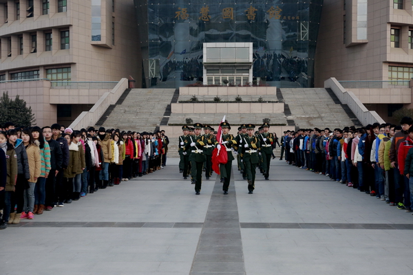 學(xué)校歷來重視國防教育工作,2014年學(xué)工部也將愛國主義教育列入工作要點。日常以國旗護(hù)衛(wèi)隊升旗活動為基礎(chǔ),在重大節(jié)日、重大事件節(jié)點配合學(xué)校相關(guān)部門和學(xué)生社團(tuán)做好主題宣傳活動。全年組織升旗儀式42次,共有24000人次參加,很大程度上提升了廣大師生的愛國主義熱情。