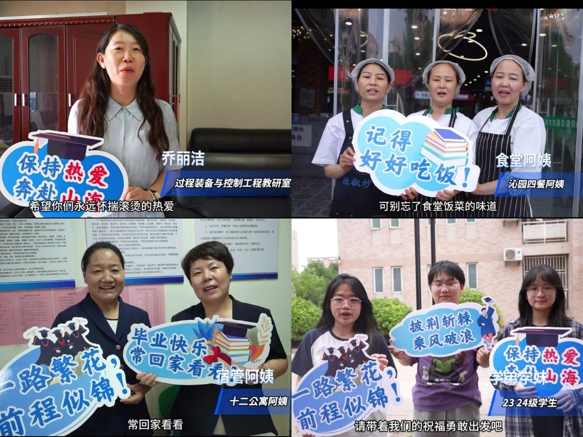 青春相伴憶芳華,畢業(yè)啟航送祝福。當蟬鳴攀上盛夏,又是鳳凰花開的季節(jié)。學院網(wǎng)絡文化中心用鏡頭記錄教研室老師、學弟學妹、食堂阿姨、宿管阿姨、保安叔叔對畢業(yè)生的深深祝福。有青春相伴的珍貴回憶,有前程似錦的真摯祝福,有“好好吃飯,天冷加衣”的暖心叮嚀,更有“畢業(yè)快樂,一路順風”的溫情祝福與囑托。希望畢業(yè)生們帶著這些溫暖與力量觸碰山間的紋理,激蕩熱愛和勇氣,在自洽的氛圍里盡情肆意。