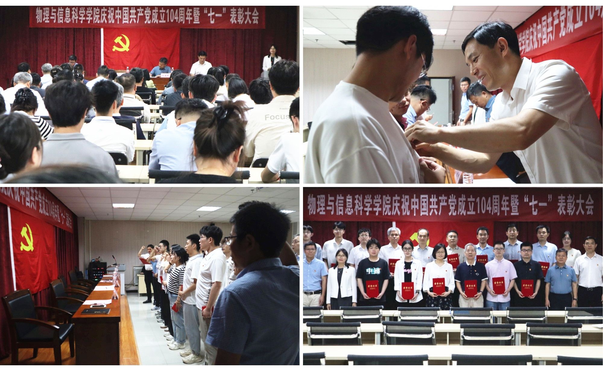 為慶祝中國共產(chǎn)黨成立104周年,表彰先進(jìn),樹立典型,物理學(xué)院黨委于6月30日舉行慶祝中國共產(chǎn)黨成立104周年暨“七一”表彰大會(huì)。學(xué)院黨委委員、全體黨員、入黨積極分子代表參加會(huì)議,會(huì)議由學(xué)院黨委副書記王曉明主持。