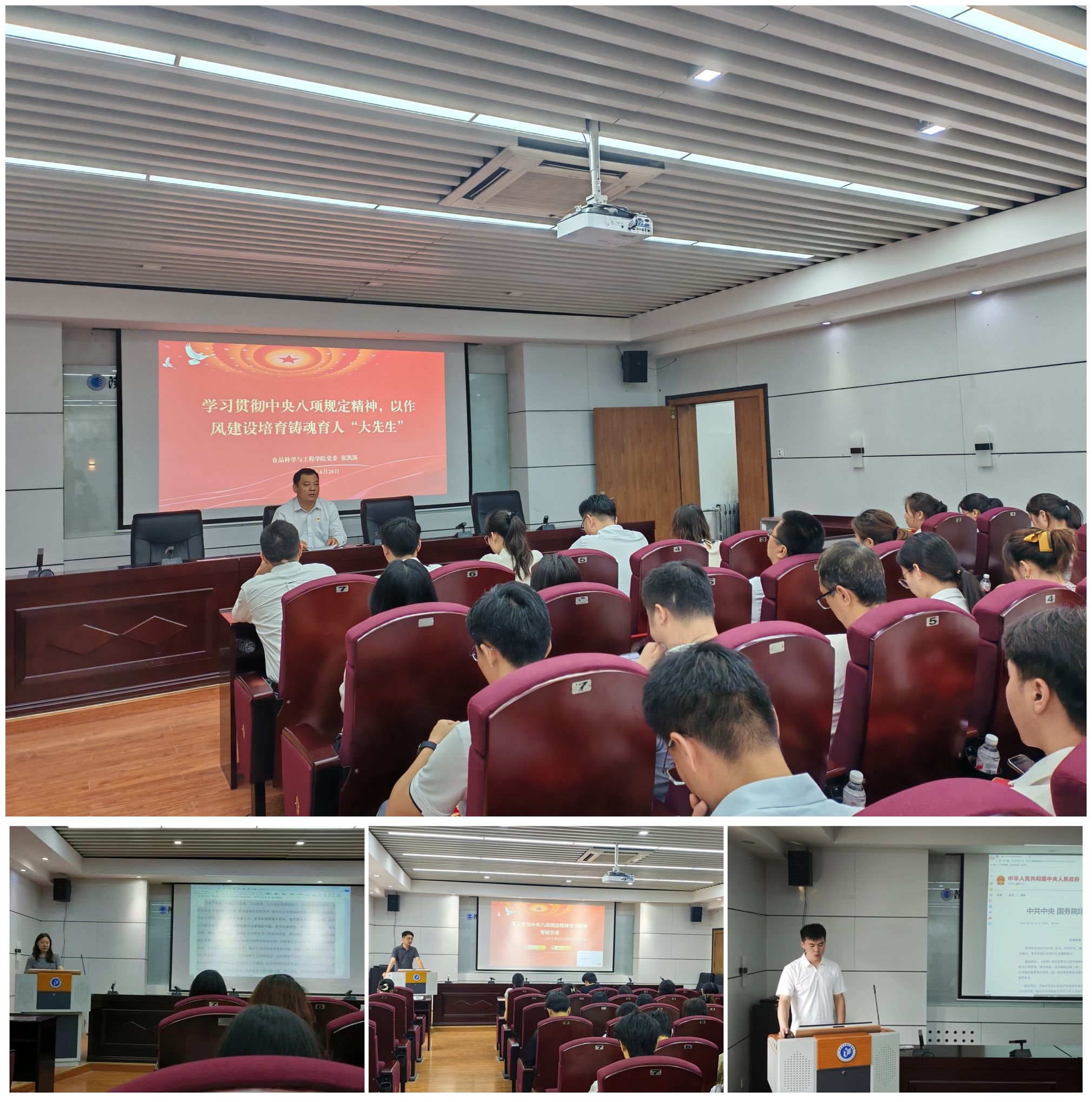 七一前夕,學(xué)院領(lǐng)導(dǎo)班子和各師生黨支部書記分別講授深入貫徹中央八項規(guī)定精神學(xué)習(xí)教育專題黨課。學(xué)院黨委書記張凱凱以《深入學(xué)習(xí)貫徹中央八項規(guī)定精神,以作風(fēng)建設(shè)培育鑄魂育人“大先生”》為題進(jìn)行授課,系統(tǒng)闡釋了教育領(lǐng)域踐行中央八項規(guī)定精神的重要意義。學(xué)院黨委委員、各師生黨支部書記圍繞深入貫徹中央八項規(guī)定精神學(xué)習(xí)教育心得體會,結(jié)合分管領(lǐng)域工作及支部特點(diǎn)講授專題黨課,持續(xù)推動中央八項規(guī)定精神在食品學(xué)院落地見效.