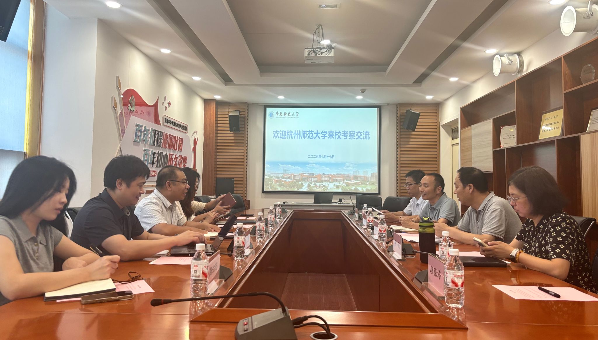 7月17日上午,杭州師范大學(xué)國家大學(xué)科技園管委會(huì)辦公室主任陳濤、國家大學(xué)科技園副總經(jīng)理姚佩蘭一行5人來校調(diào)研科技成果轉(zhuǎn)化??萍继幪庨L朱建鋒,科技處、前沿院相關(guān)處室負(fù)責(zé)人參加座談,座談會(huì)由前沿院副院長李志如主持。