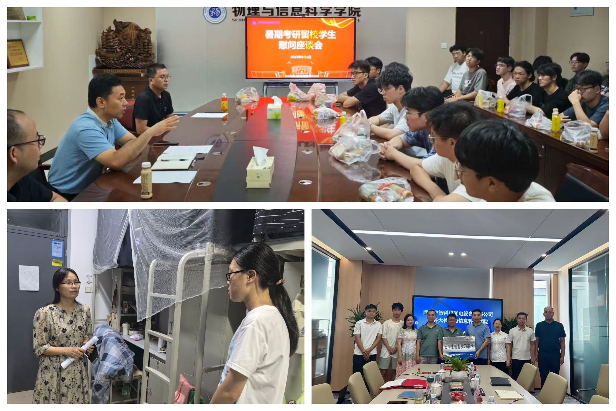 聚焦學(xué)生需求,延伸育人“服務(wù)鏈”。針對(duì)暑期考研學(xué)生復(fù)習(xí)場(chǎng)地緊張的問(wèn)題,學(xué)院積極協(xié)調(diào)實(shí)驗(yàn)室、會(huì)議室等空間開辟為考研自習(xí)室,并配備桌椅、飲用水、網(wǎng)絡(luò)等基礎(chǔ)物資,為學(xué)生提供安靜便捷的學(xué)習(xí)環(huán)境。假期中段,學(xué)院專門召開“暑期考研留校學(xué)生慰問(wèn)座談會(huì)”,院領(lǐng)導(dǎo)、系主任及輔導(dǎo)員與學(xué)生親切交流,傾聽備考困惑與需求,既為大家加油鼓勁,也送上貼心慰問(wèn)品,讓學(xué)生在專注復(fù)習(xí)時(shí)更能感受到學(xué)院的溫暖。同時(shí),學(xué)院專程前往中智科儀等企業(yè),看望慰問(wèn)暑期在企實(shí)習(xí)學(xué)生,實(shí)地了解他們的實(shí)習(xí)環(huán)境與實(shí)際需求,為學(xué)生實(shí)習(xí)實(shí)踐全程保駕護(hù)航。
