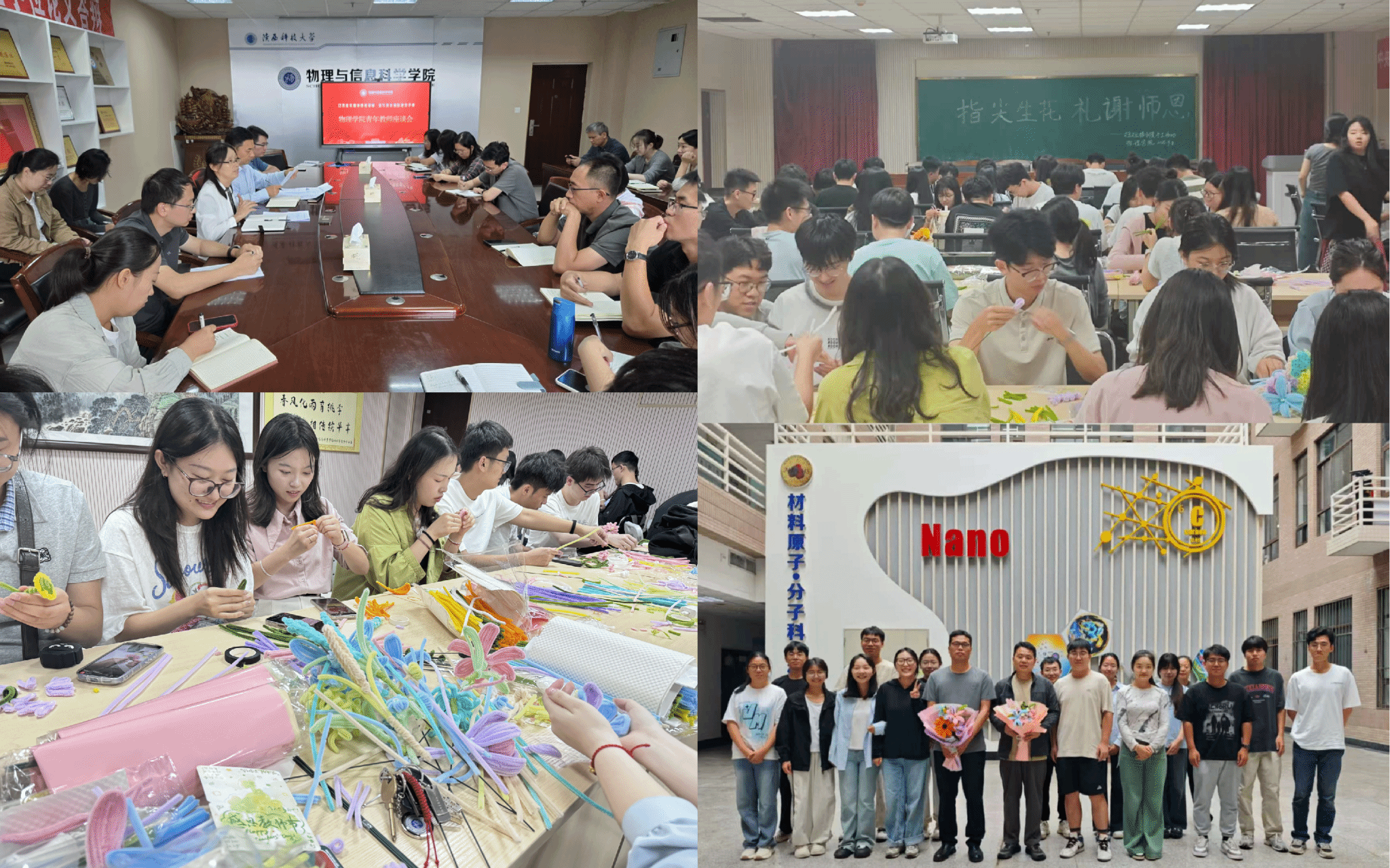 指尖傳情,以手工花束承載師恩謝言。“老師,祝您節(jié)日快樂,這束康乃馨是我們親手做的!”教師節(jié)當天,理科樓大廳“花香”涌動。學院團委發(fā)起的“指尖生花,感謝師恩”活動進入“派送時刻”——400余名本科、研究生,歷時3天親手用扭扭棒制作完成800余支康乃馨、向日葵、郁金香、滿天星等花束,最終拼裝成一束束精美的節(jié)日花束送給全院70余名教師。教師們紛紛表示,這是收到過最特別的教師節(jié)禮物!
