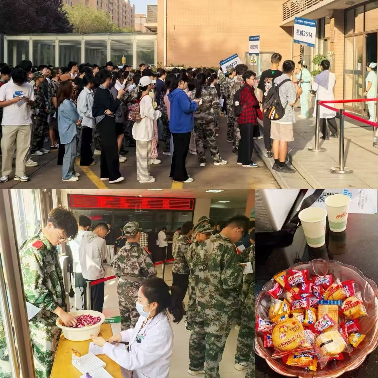 本次體檢涵蓋采血、內(nèi)科等七個項目,全面評估新生的身體健康狀況。校醫(yī)院提前謀劃,準(zhǔn)確定制體檢項目、合理劃分區(qū)域、科學(xué)安排時間、工作人員全程引導(dǎo),制定了“錯峰體檢+分區(qū)服務(wù)”方案,執(zhí)行潮汐式動態(tài)服務(wù)模式,用貼心服務(wù)提升新生校園醫(yī)療體驗。體檢前,通過各院系輔導(dǎo)員微信群,發(fā)布《新生入學(xué)體檢流程》《新生入學(xué)體檢須知》等工作指南,確保信息傳遞及時、準(zhǔn)確、無遺漏;過程中,根據(jù)早高峰人流量靈活調(diào)整時間,減少空腹等待的不適,增設(shè)了糖果、餅干等預(yù)防低血糖的“能量補(bǔ)給”食品,安排醫(yī)護(hù)人員全程詢問暈血、暈針情況并給予關(guān)照。通過體檢,校醫(yī)院為每位新生建立了動態(tài)更新的“個性化健康檔案”,為后續(xù)的健康管理、疾病預(yù)防、科普宣教提供科學(xué)依據(jù),構(gòu)建“預(yù)防—監(jiān)測—干預(yù)”全周期健康管理鏈條,實現(xiàn)了學(xué)生健康狀況的動態(tài)跟蹤與閉環(huán)管理。