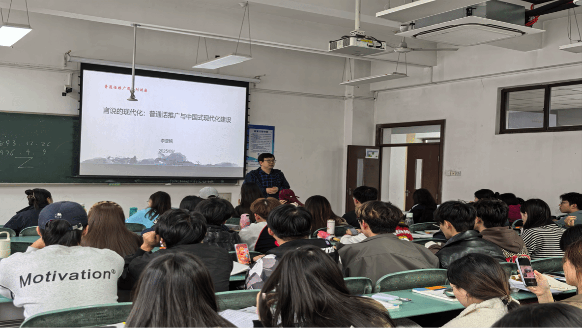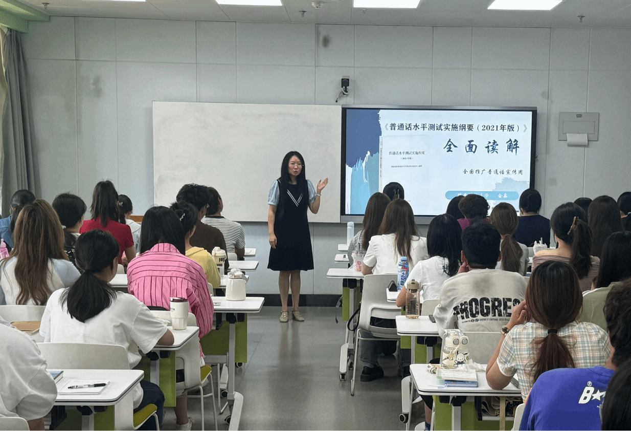校內(nèi)活動百花齊放,涌現(xiàn)推普潮。舉辦《言說的現(xiàn)代化:普通話推廣與中國式現(xiàn)代化建設(shè)》《普通話水平測試實施綱要讀解》專題講座;為民族生定制《說好普通話,融入新校園》主題報告,助力民族學(xué)子快速適應(yīng)校園生活。中華經(jīng)典誦寫講基地舉辦了“推廣普通話,傳承抗戰(zhàn)精神”主題朗誦會,在宣傳推廣普通話和朗誦藝術(shù)的同時,進(jìn)一步提升學(xué)生規(guī)范用語意識和社會責(zé)任感。校團(tuán)委以“青春為中國式現(xiàn)代化挺膺擔(dān)當(dāng)”為主題,組織開展了“聲誦中國”經(jīng)典作品誦讀活動。普通話測試站緊扣推普周主題,組織師生以規(guī)范用語講述反法西斯斗爭故事,通過生動敘事傳承紅色基因,同步多渠道宣傳發(fā)動,吸引超千名師生報名普通話水平測試,實現(xiàn)“以測促學(xué)、以學(xué)促用”。
