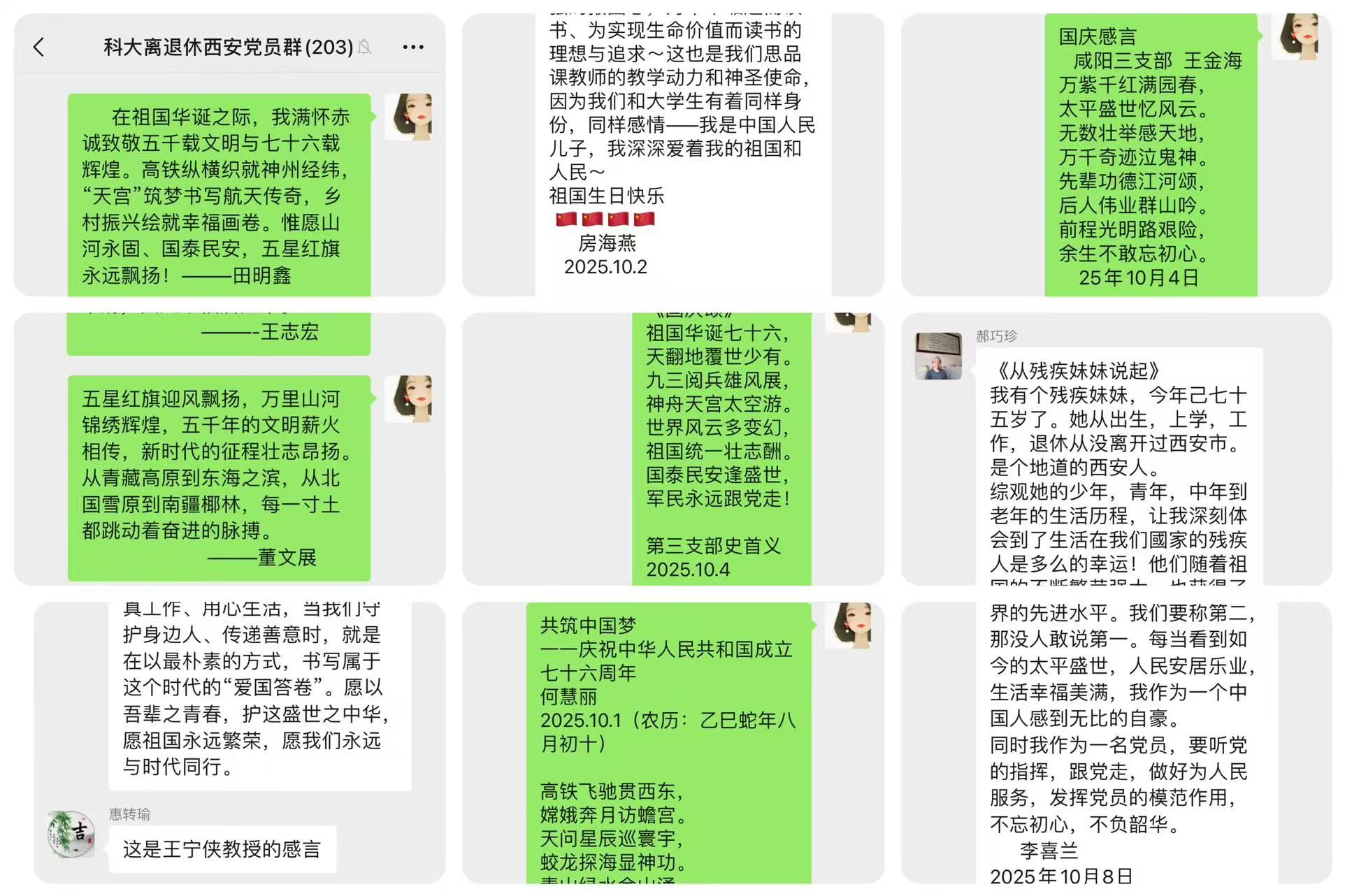 離退處黨委已對征集到的感言進(jìn)行整理篩選,部分優(yōu)秀作品將通過離退處公眾號(hào)、家屬區(qū)公告欄等平臺(tái)展示。這些飽含溫度的文字,不僅成為老黨員們抒發(fā)愛國情懷、留存時(shí)代記憶的重要載體,更在離退休群體中形成了“憶初心、話擔(dān)當(dāng)、頌祖國”的良好氛圍,進(jìn)一步增強(qiáng)了退休黨員的歸屬感與凝聚力。