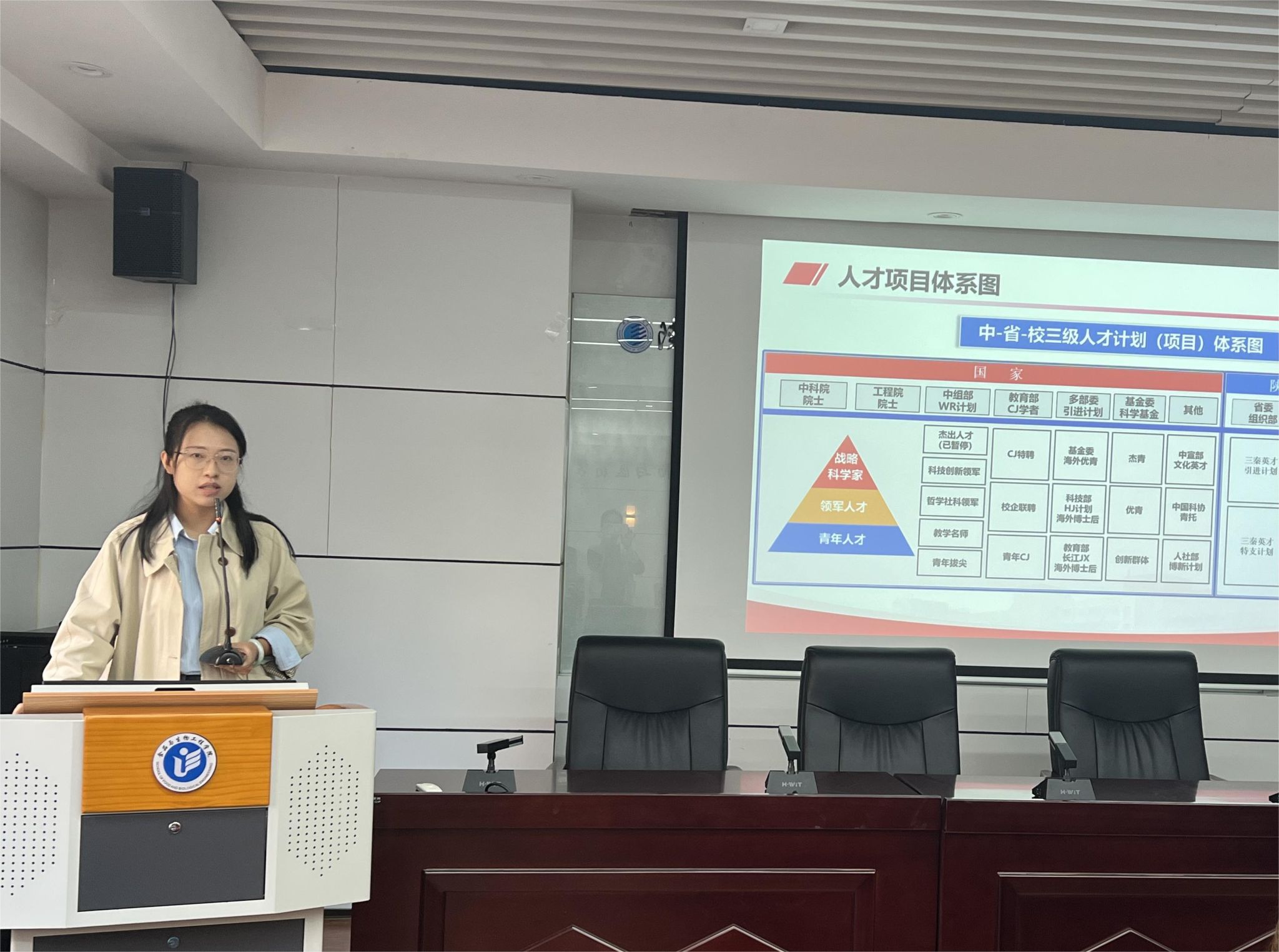 黨梓睿詳細(xì)介紹了國家級、省級各類人才項目的申報政策,細(xì)致解讀了各類人才項目的評審流程及與教師職業(yè)發(fā)展的銜接路徑,為學(xué)院青年教師規(guī)劃長遠(yuǎn)學(xué)術(shù)生涯、實現(xiàn)職業(yè)階梯式發(fā)展指明了方向。