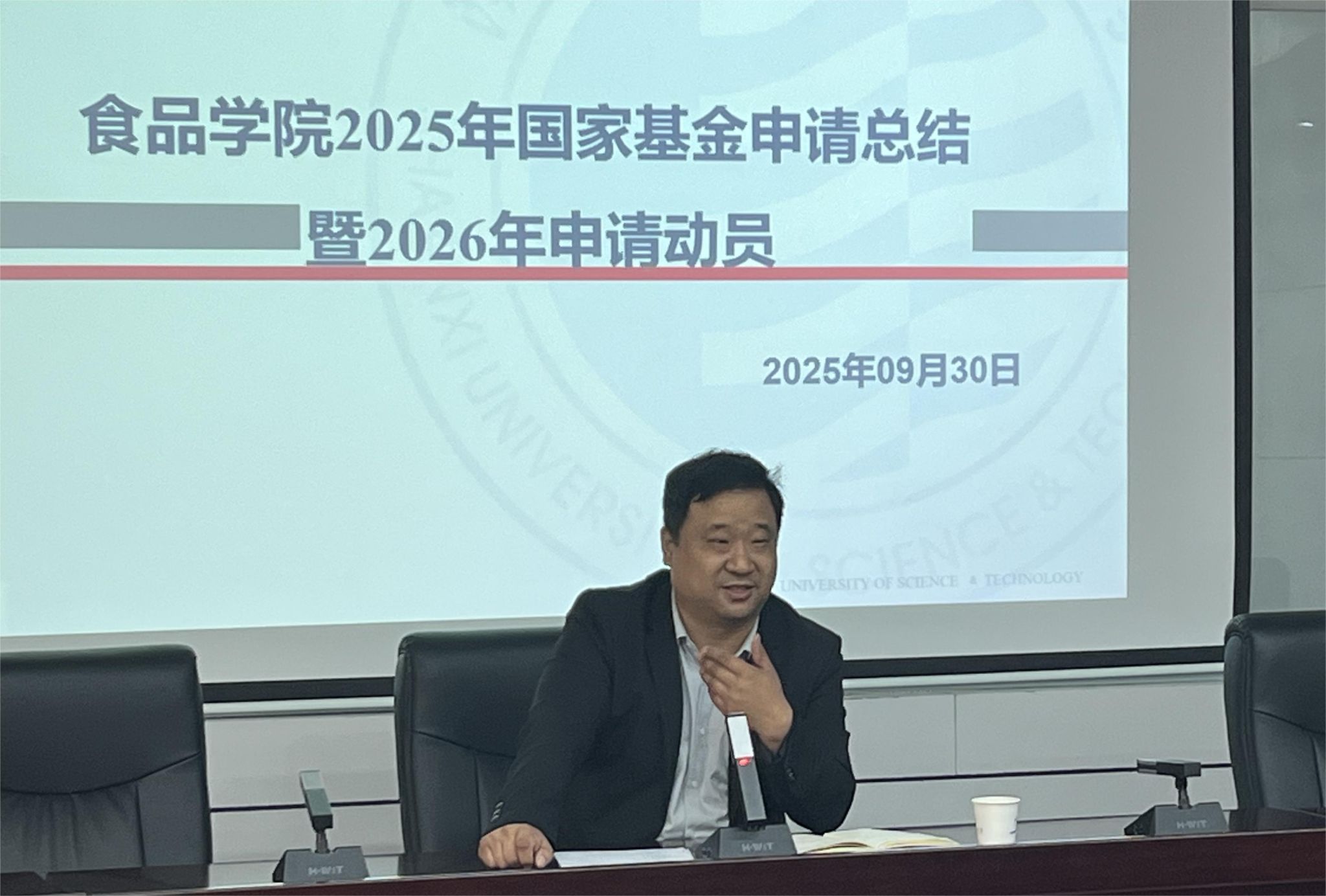 9月30日上午,食品學(xué)院召開2026年國家自然科學(xué)基金和人才項目申報動員會,助力學(xué)院教師精準(zhǔn)把握申報政策,凝聚團(tuán)隊攻堅合力,提升學(xué)院的科研競爭力。會議特邀科技處副處長徐衛(wèi)濤和校人才工作辦公室干事黨梓睿作專題報告。2026年國家自然科學(xué)基金和人才項目申報的全體教師參加會議,會議由學(xué)院副院長姚曉琳主持。