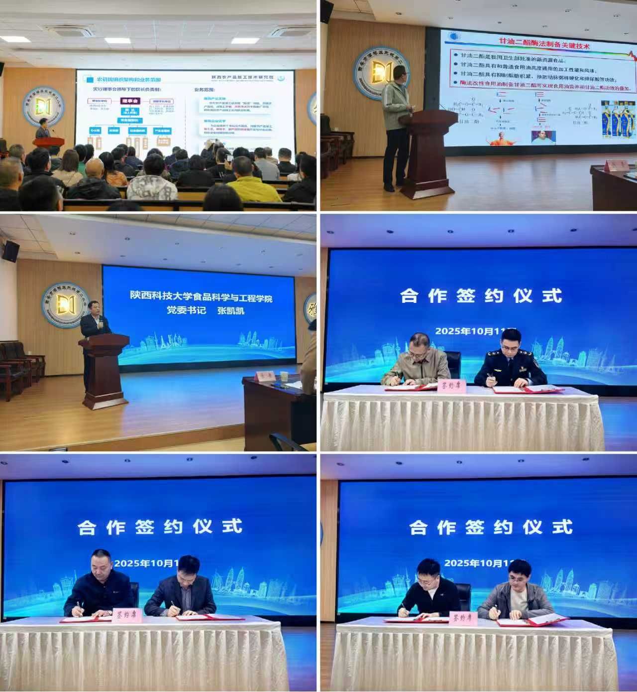 對(duì)接會(huì)上,曾橋、李紅波、李道明三位老師分別就陜西農(nóng)產(chǎn)品加工技術(shù)研究院技術(shù)成果以及食用菌風(fēng)味肽、功能性食用油脂系列高價(jià)值專(zhuān)利進(jìn)行推介。蒲華寅代表學(xué)院與灞橋區(qū)知識(shí)產(chǎn)權(quán)局簽訂校地合作協(xié)議,曾橋、李紅波分別與西安眾樂(lè)豆制品實(shí)業(yè)有限公司、陜西安旗食品有限公司簽訂校企轉(zhuǎn)化協(xié)議,聚焦特色豆制品綠色加工保鮮、健康面點(diǎn)開(kāi)發(fā)等聯(lián)合技術(shù)攻關(guān)和專(zhuān)利技術(shù)保護(hù),為灞橋區(qū)加工企業(yè)轉(zhuǎn)型升級(jí)發(fā)展新質(zhì)生產(chǎn)力提供科技人才支持。