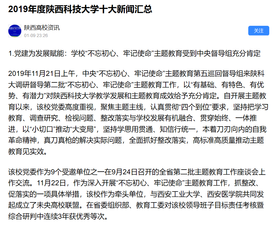 百度新聞:2019年度陜西科技大學(xué)十大新聞匯總