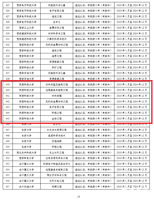 開創(chuàng)一流本科教育新局面:6月,教育部高等教育教學(xué)評(píng)估中心和中國(guó)工程教育專業(yè)認(rèn)證協(xié)會(huì)公布了2018年參加全國(guó)工程教育專業(yè)認(rèn)證的認(rèn)證結(jié)論,學(xué)校材料成型及控制工程等7個(gè)專業(yè)順利通過,位居陜西高校第一。截至2019年底,學(xué)校工程教育專業(yè)認(rèn)證正式通過、完成進(jìn)??疾?、擬進(jìn)校考查、新受理專業(yè)數(shù)合計(jì)18個(gè),位列陜西高校第三,全國(guó)輕工類高校第一名。