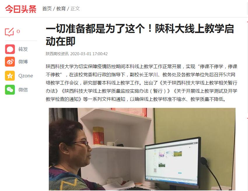 今日頭條APP:一切準備都是為了這個!陜科大線上教學(xué)啟動在即