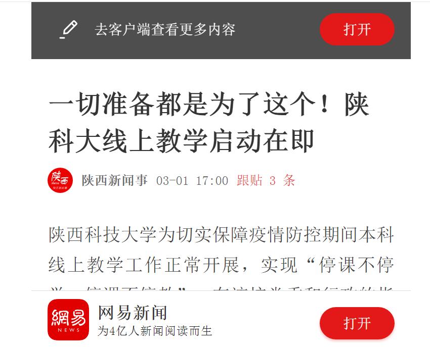 網(wǎng)易新聞APP:一切準備都是為了這個!陜科大線上教學(xué)啟動在即