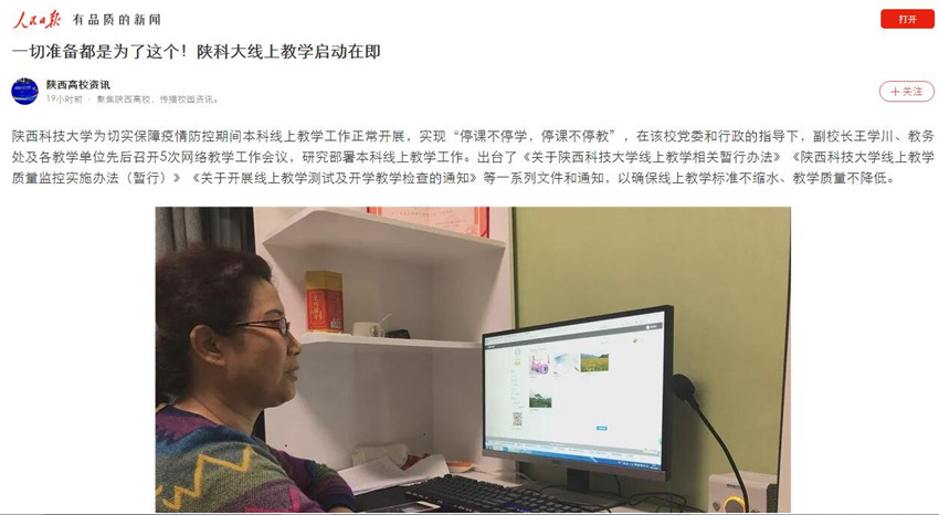 人民日報APP:一切準備都是為了這個!陜科大線上教學(xué)啟動在即
