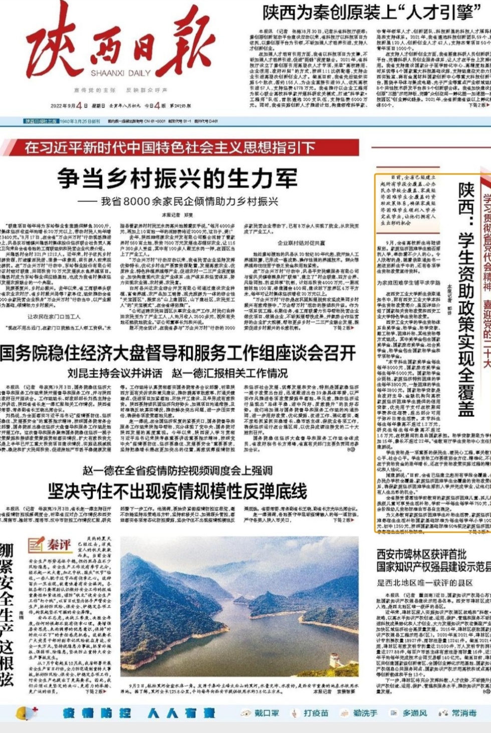 《陜西日?qǐng)?bào)》:陜西:學(xué)生資助政策實(shí)現(xiàn)全覆蓋