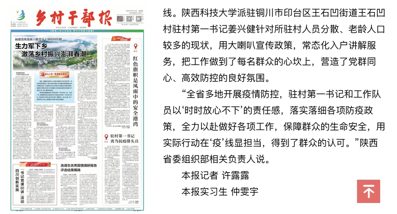 近日,《鄉(xiāng)村干部報》報道我校駐村第一書記姜興健勇當(dāng)抗疫排頭兵,營造了黨群同心、高效防控良好氛圍的先進(jìn)事跡。