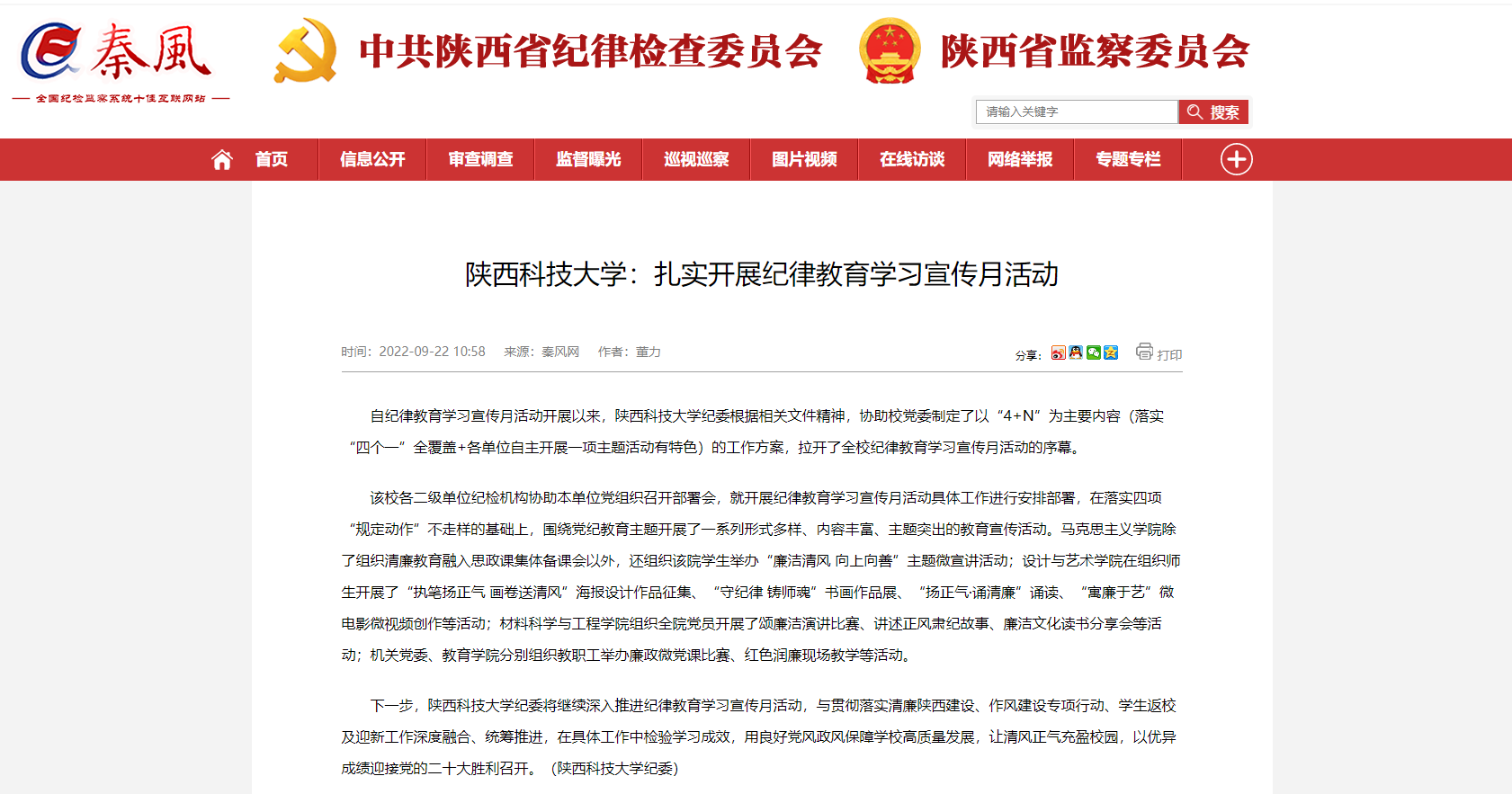 秦風(fēng)網(wǎng):陜西科技大學(xué):扎實開展紀(jì)律教育學(xué)習(xí)宣傳月活動