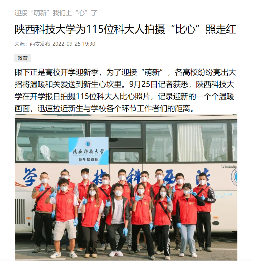 西安發(fā)布:陜西科技大學(xué)為115位科大人拍攝“比心”照走紅