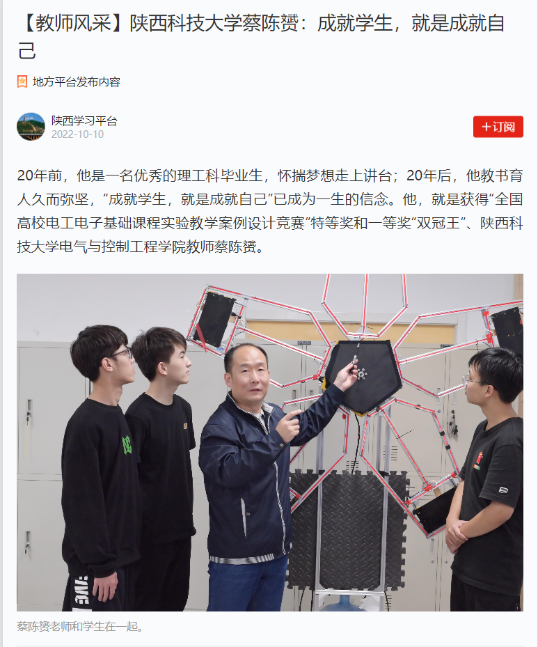 學習強國:【教師風采】陜西科技大學蔡陳赟:成就學生,就是成就自己