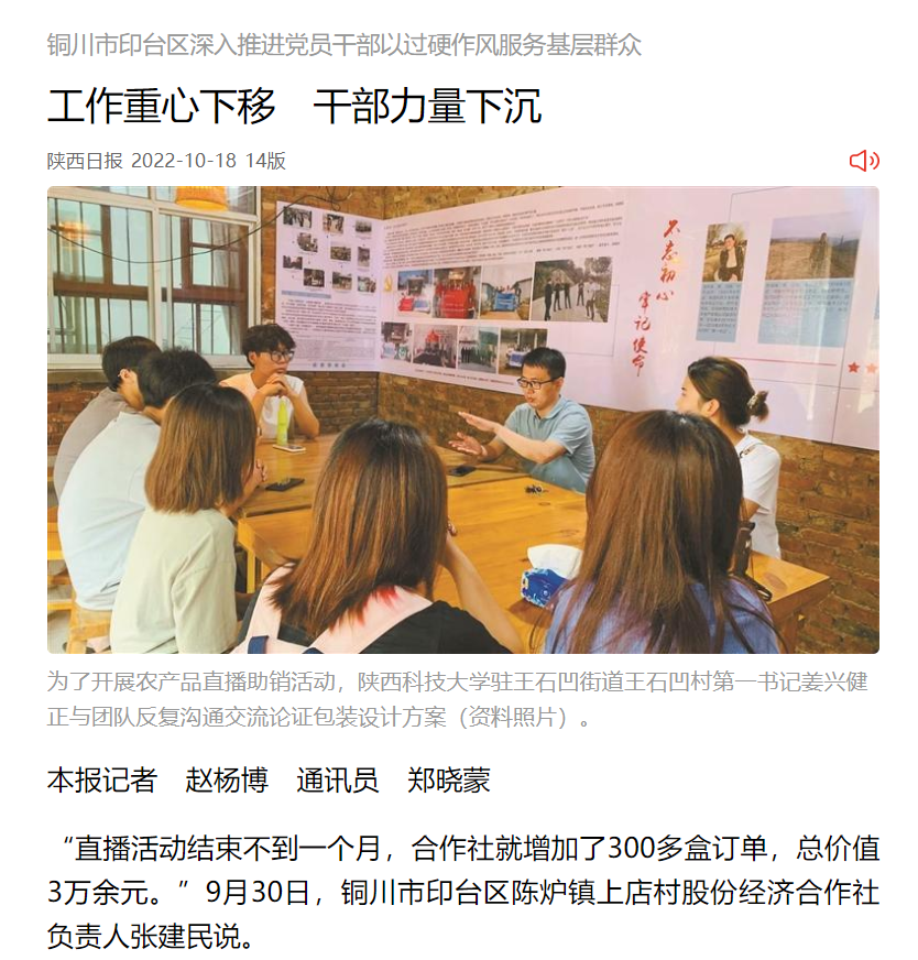 《陜西日報》:工作重心下移 干部力量下沉