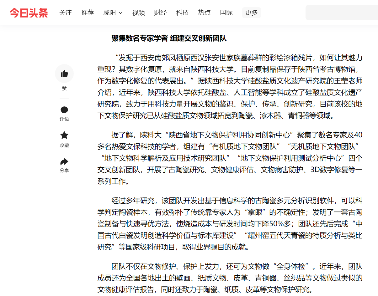 今日頭條:【高質(zhì)量發(fā)展走一線】陜西高校“黑科技”助力文物保護(hù)修復(fù)
