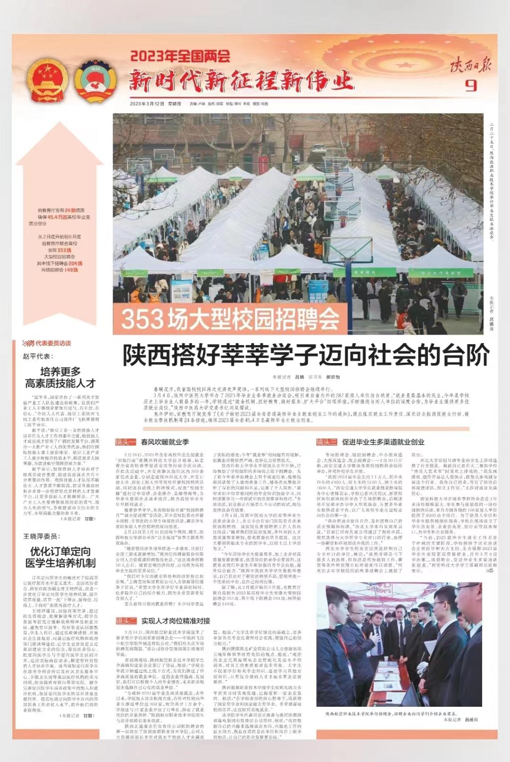 近日,《陜西日?qǐng)?bào)》《陜西新聞聯(lián)播》報(bào)道2023年陜西省高校畢業(yè)生促就業(yè)“啟航行動(dòng)”首站在我校開啟。