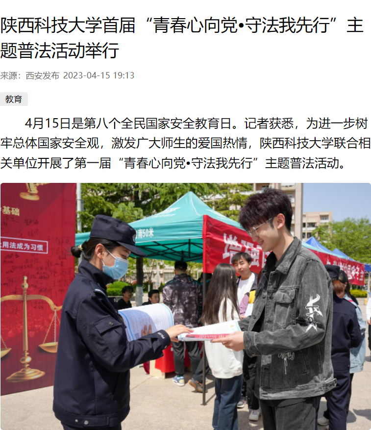 西安發(fā)布:陜西科技大學(xué)首屆“青春心向黨?守法我先行”主題普法活動(dòng)舉行