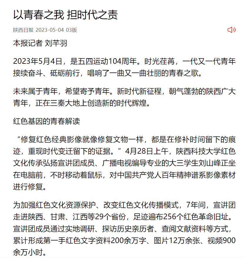 近日,群眾新聞報道我校紅色文化傳承弘揚宣講團以青春之我擔時代之責。