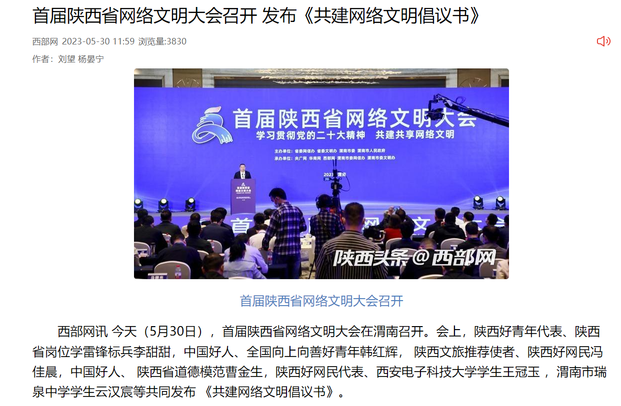 陜西頭條:首屆陜西省網(wǎng)絡(luò)文明大會(huì)召開(kāi) 發(fā)布《共建網(wǎng)絡(luò)文明倡議書(shū)》