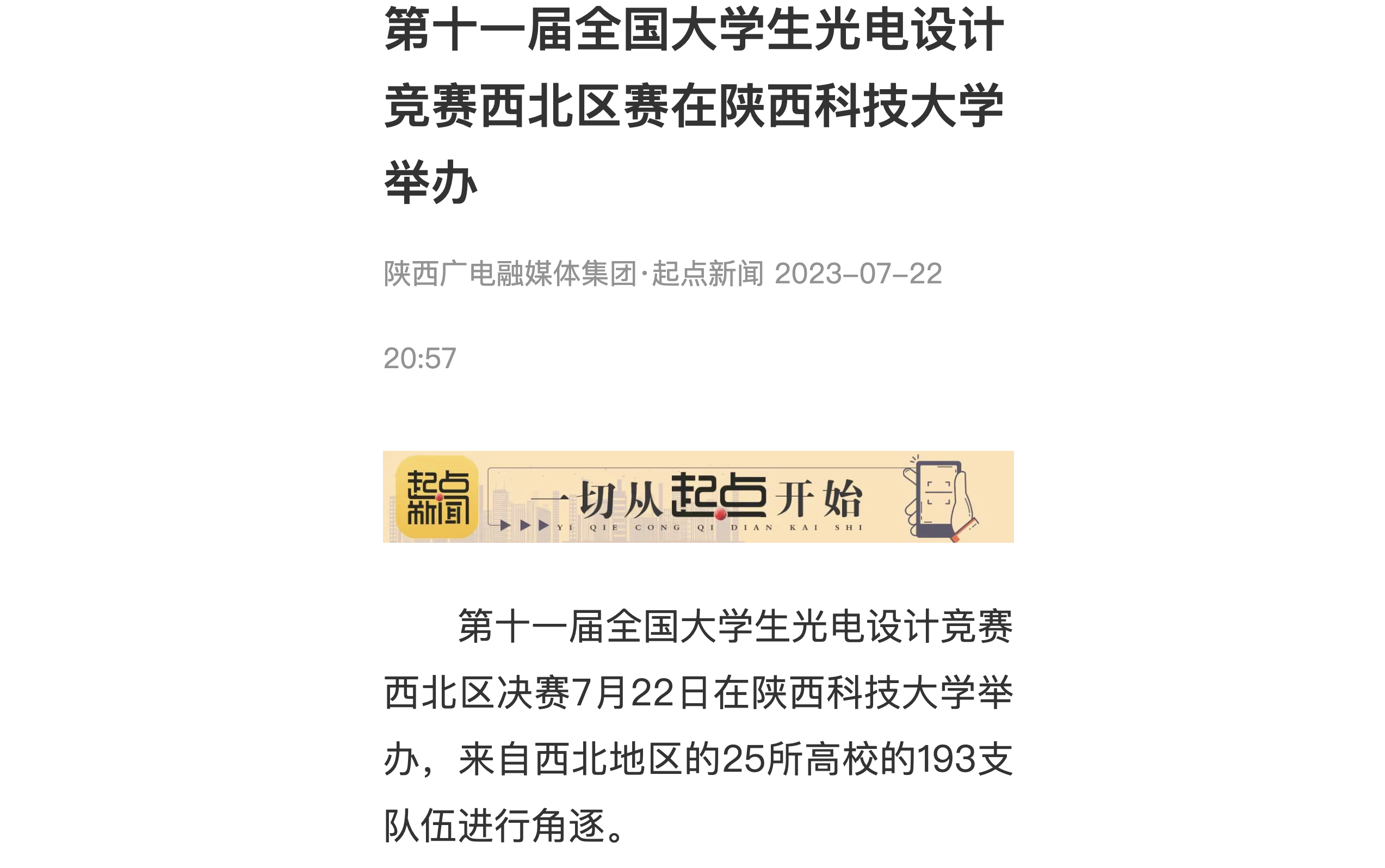 近日,起點新聞、群眾新聞、原點新聞、白鹿視頻等媒體報道第十一屆全國大學(xué)生光電設(shè)計競賽西北區(qū)賽在我校召開。