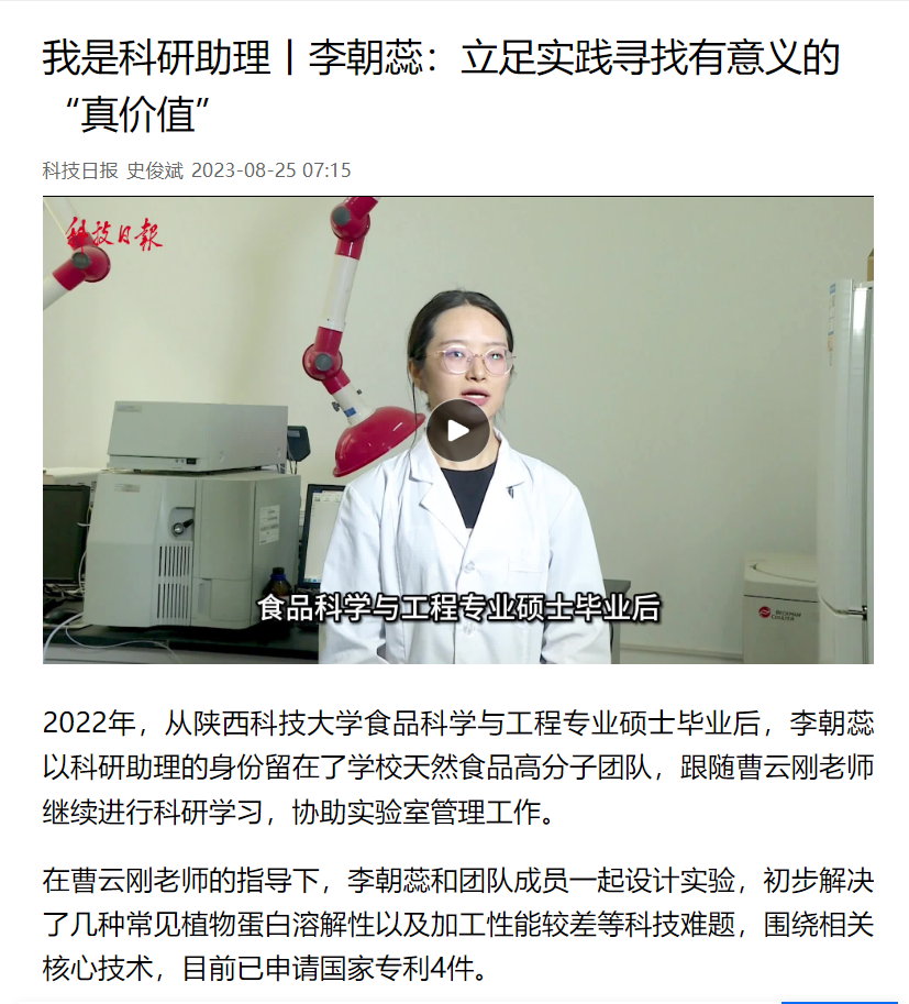 《科技日報》:我是科研助理丨李朝蕊:立足實踐尋找有意義的“真價值”