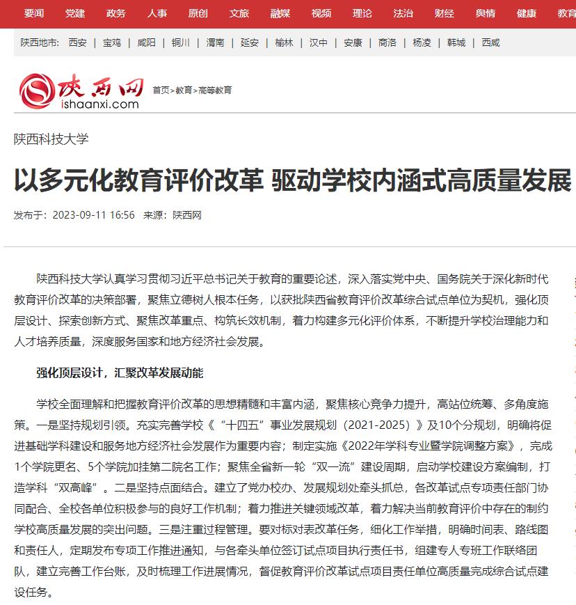 陜西網(wǎng):陜西科技大學(xué)以多元化教育評(píng)價(jià)改革 驅(qū)動(dòng)學(xué)校內(nèi)涵式高質(zhì)量發(fā)展