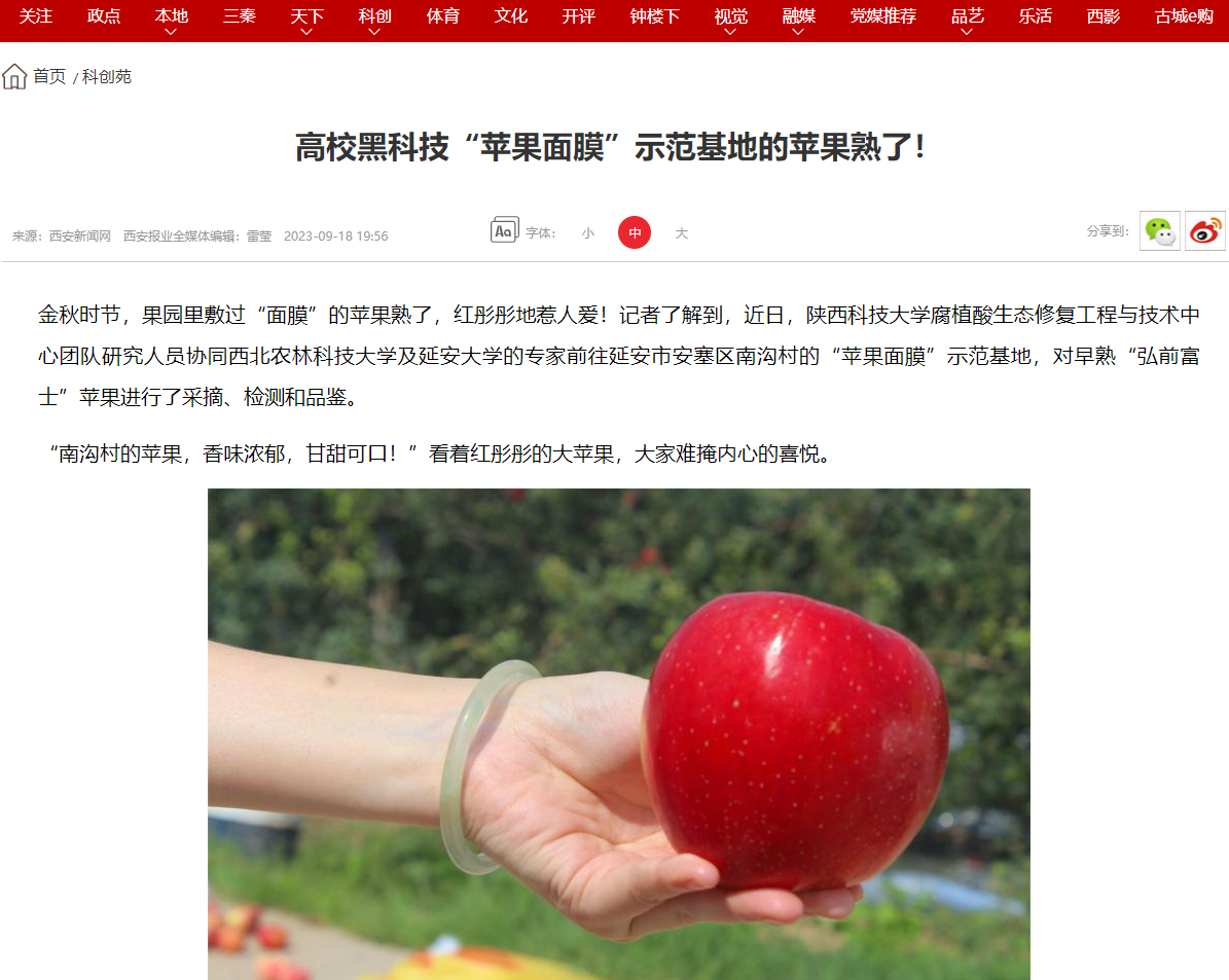 西安新聞網(wǎng):高校黑科技“蘋果面膜”示范基地的蘋果熟了!