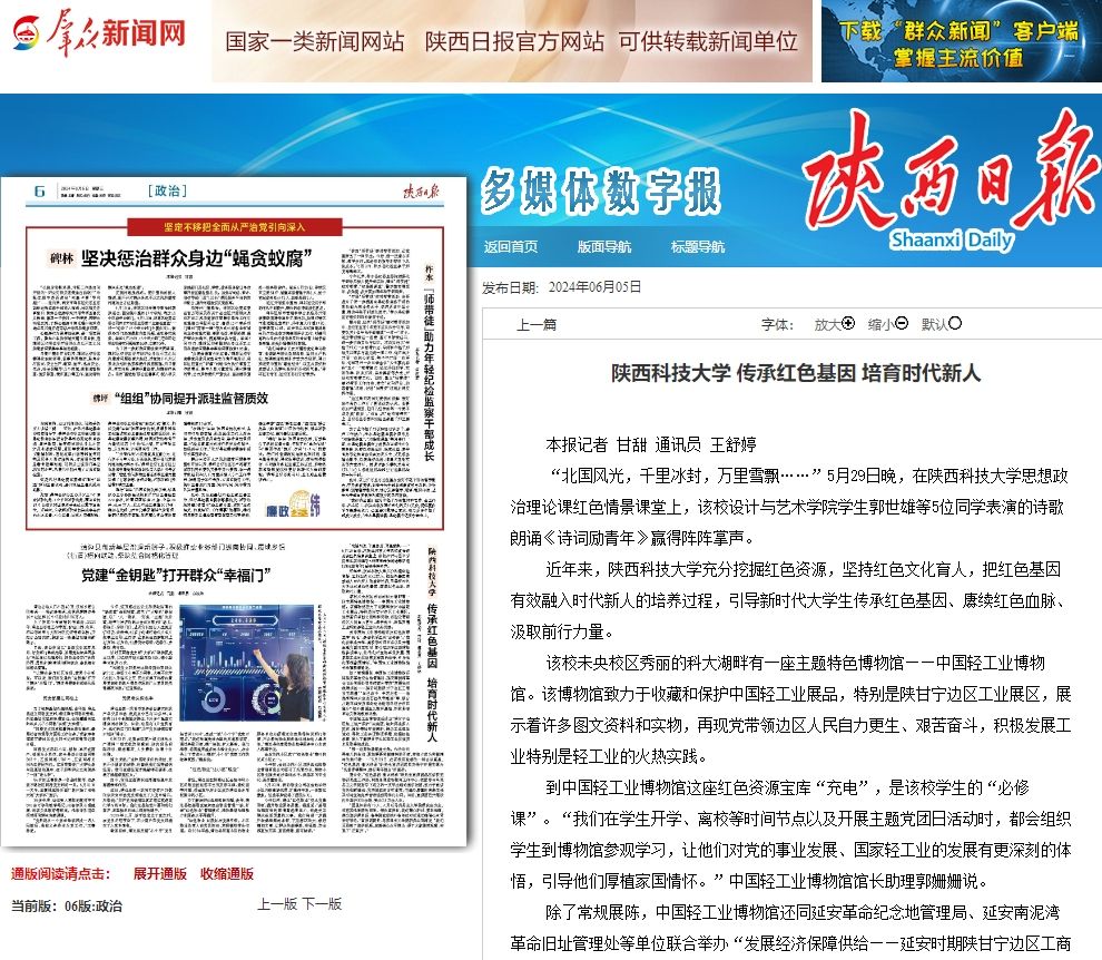 近日,《陜西日?qǐng)?bào)》專(zhuān)題報(bào)道我校傳承紅色基因,培育時(shí)代新人。