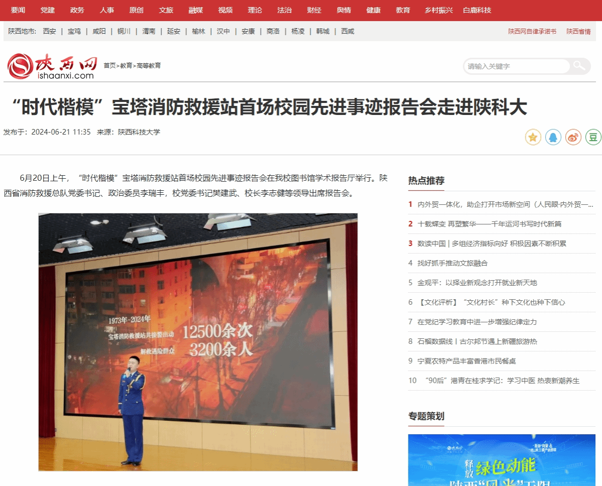 學(xué)習(xí)強(qiáng)國:“時(shí)代楷模”寶塔消防救援站首場校園先進(jìn)事跡報(bào)告會(huì)走進(jìn)陜科大