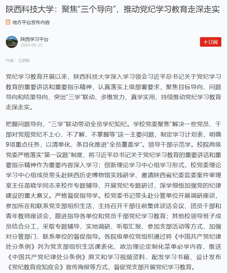 學(xué)習(xí)強(qiáng)國(guó):陜西科技大學(xué):聚焦“三個(gè)導(dǎo)向”,推動(dòng)黨紀(jì)學(xué)習(xí)教育走深走實(shí)