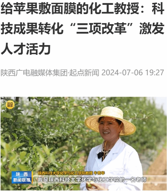 《陜西新聞聯(lián)播》:給蘋果敷面膜的化工教授:科技成果轉化“三項改革”激發(fā)人才活力