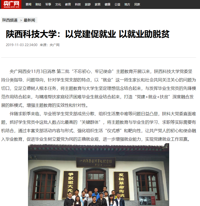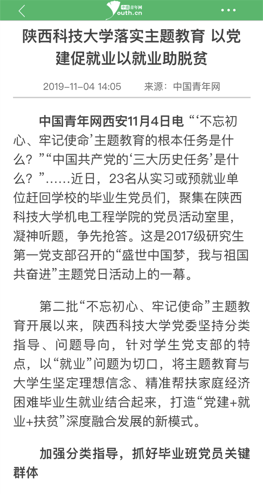 中國青年網(wǎng):陜西科技大學落實主題教育 以黨建促就業(yè)以就業(yè)助脫貧