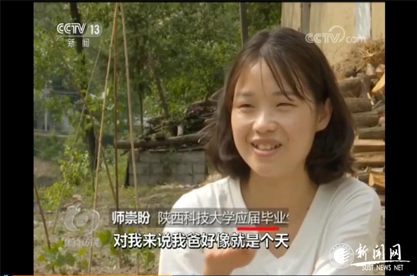 “這個愛笑的女生叫師崇盼,是陜西科技大學經(jīng)濟與管理學院市場營銷專業(yè)的應屆畢業(yè)生。……師崇盼是一名來自農(nóng)村的貧困生……輔導員了解到師崇盼的具體情況后,就反映到了學校學工部的學生資助管理中心。中心工作人員經(jīng)過核實確認,把師崇盼定為了“建檔立卡”的貧困生……”這是中央電視臺《焦點訪談》欄目今年專訪陜科大幫扶家庭經(jīng)濟困難學生就業(yè)工作播出的一段采訪內(nèi)容。