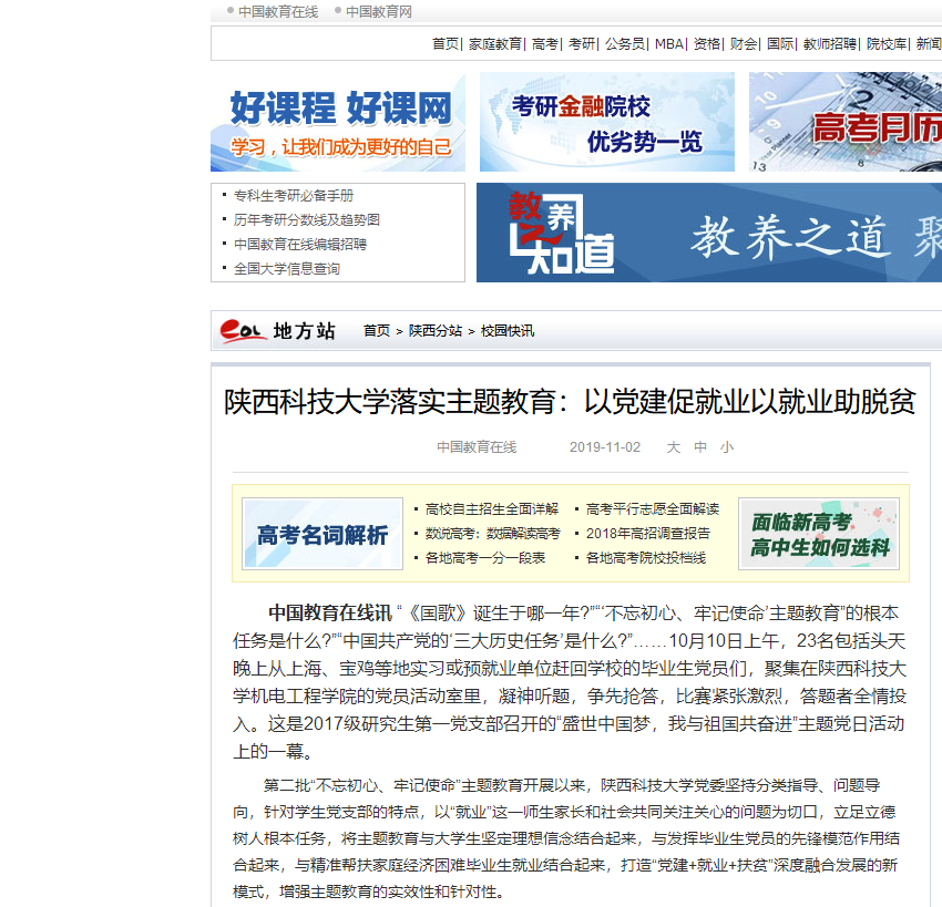 中國教育網(wǎng):陜西科技大學落實主題教育 以黨建促就業(yè)以就業(yè)助脫貧