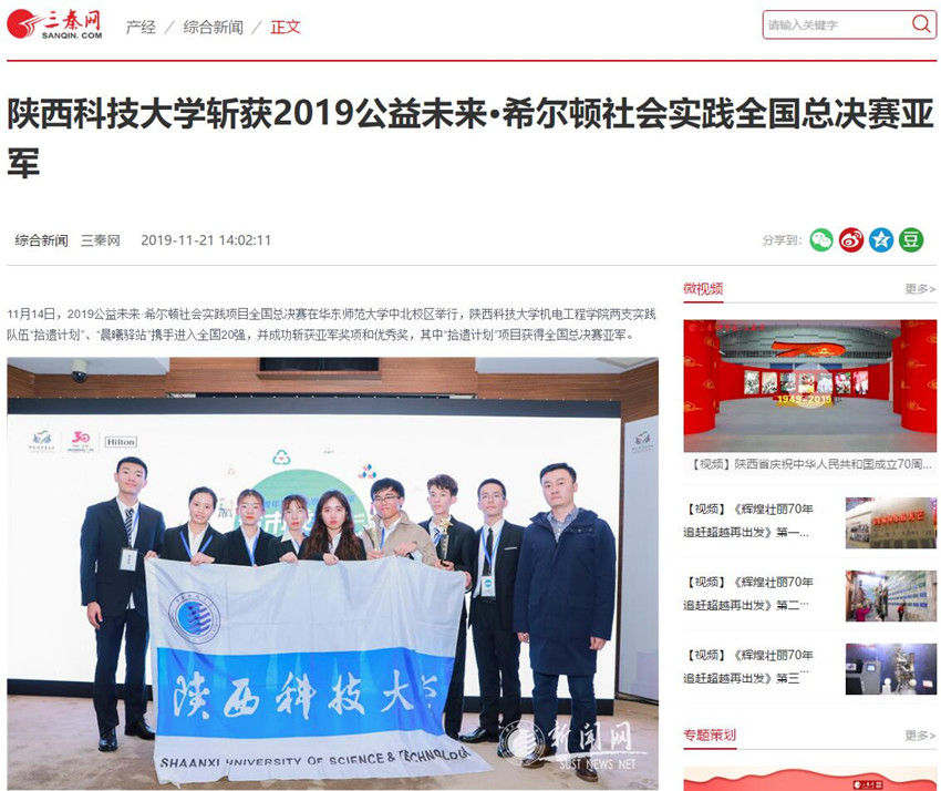 三秦網(wǎng):陜西科技大學(xué)斬獲2019公益未來(lái)·希爾頓社會(huì)實(shí)踐全國(guó)總決賽亞軍