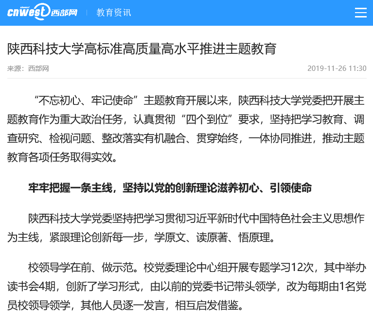 西部網(wǎng):陜西科技大學(xué)高標(biāo)準(zhǔn)高質(zhì)量高水平推進(jìn)主題教育