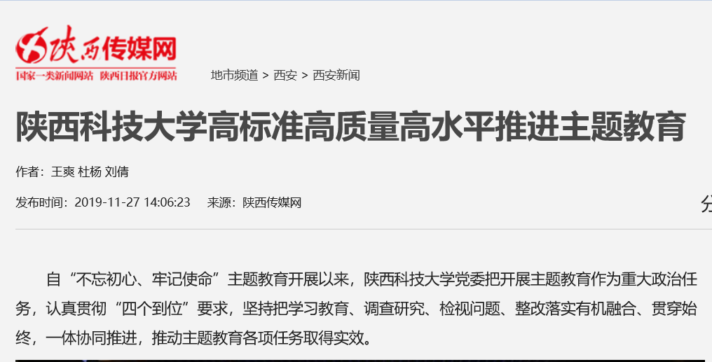 陜西傳媒網(wǎng):陜西科技大學(xué)高標(biāo)準(zhǔn)高質(zhì)量高水平推進(jìn)主題教育