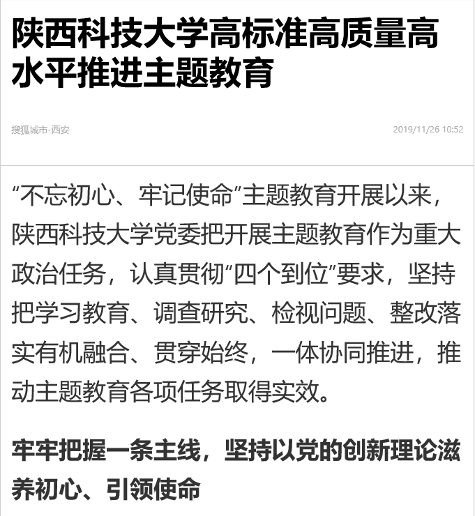 搜狐新聞:陜西科技大學(xué)高標(biāo)準(zhǔn)高質(zhì)量高水平推進(jìn)主題教育