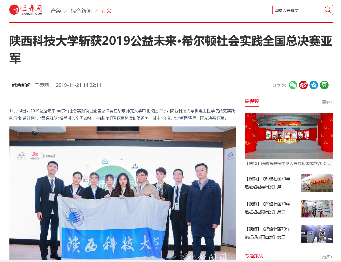 三秦網(wǎng):陜西科技大學斬獲2019公益未來·希爾頓社會實踐全國總決賽亞軍