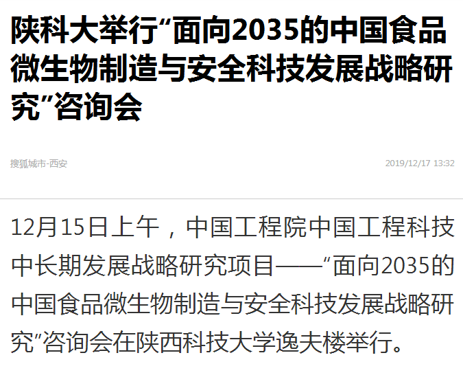 搜狐:陜科大舉行“面向2035的中國食品微生物制造與安全科技發(fā)展戰(zhàn)略研究”咨詢會