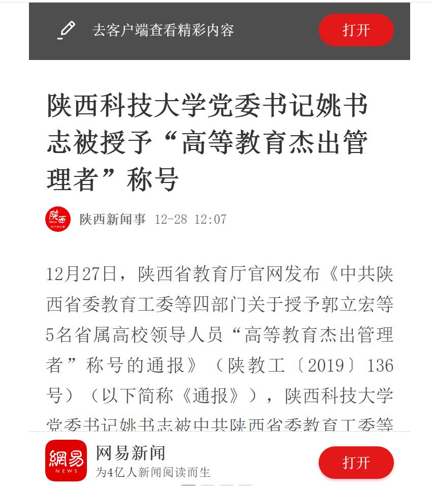網(wǎng)易新聞APP:陜西科技大學黨委書記姚書志被授予“高等教育杰出管理者”稱號
