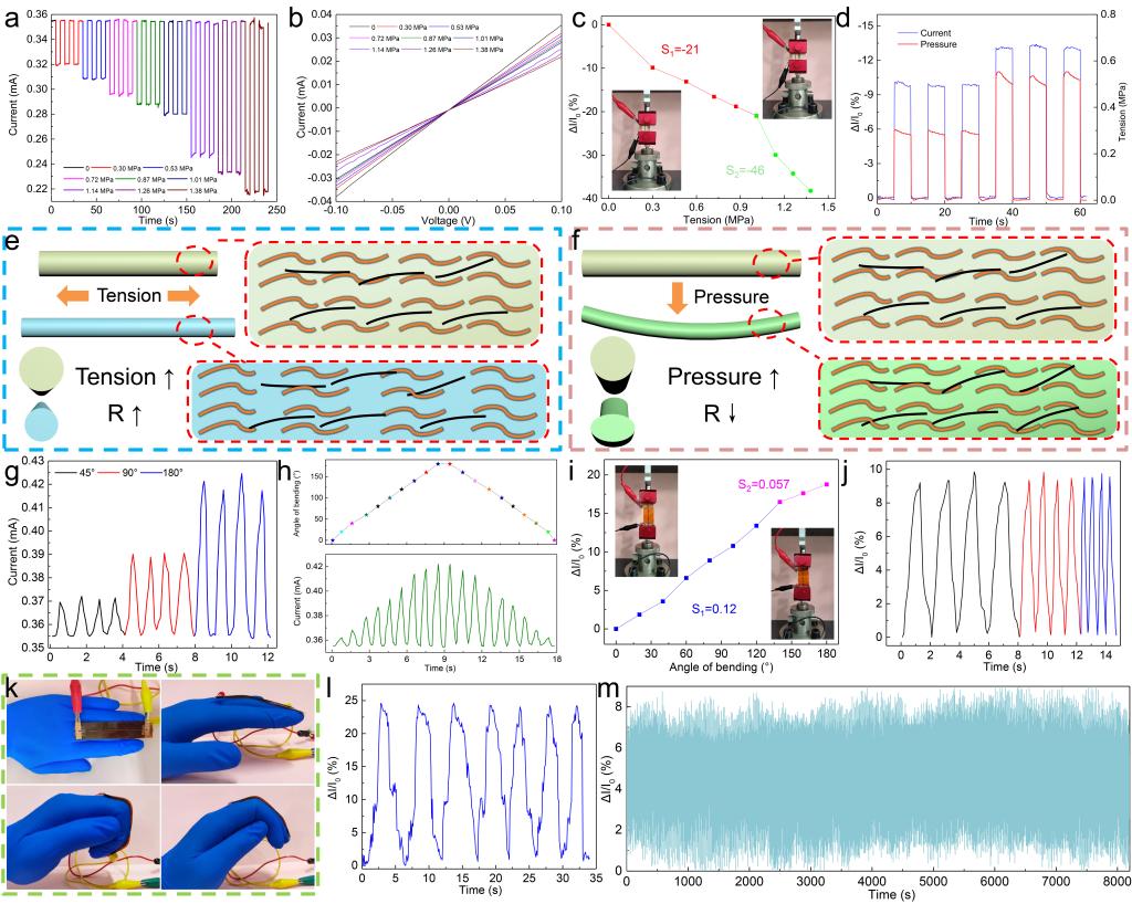 ANF/CNT/PPy氣凝膠纖維的傳感特性